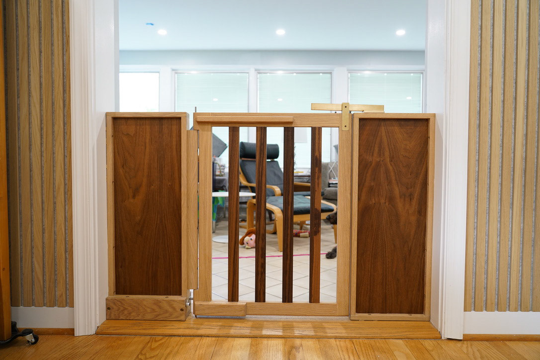 DogĀ gate with custom-made brass hingeĀ and latch.